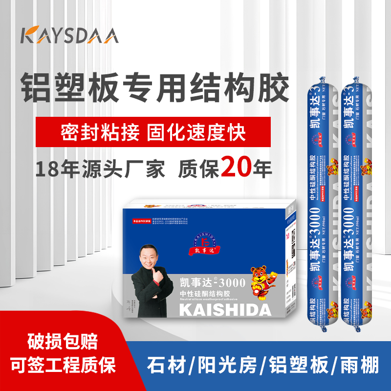 凱事達3000中性硅酮結(jié)構(gòu)膠,適用于石材、鋁塑板、平板玻璃、展柜 雨棚、陽光房,超強防水耐候